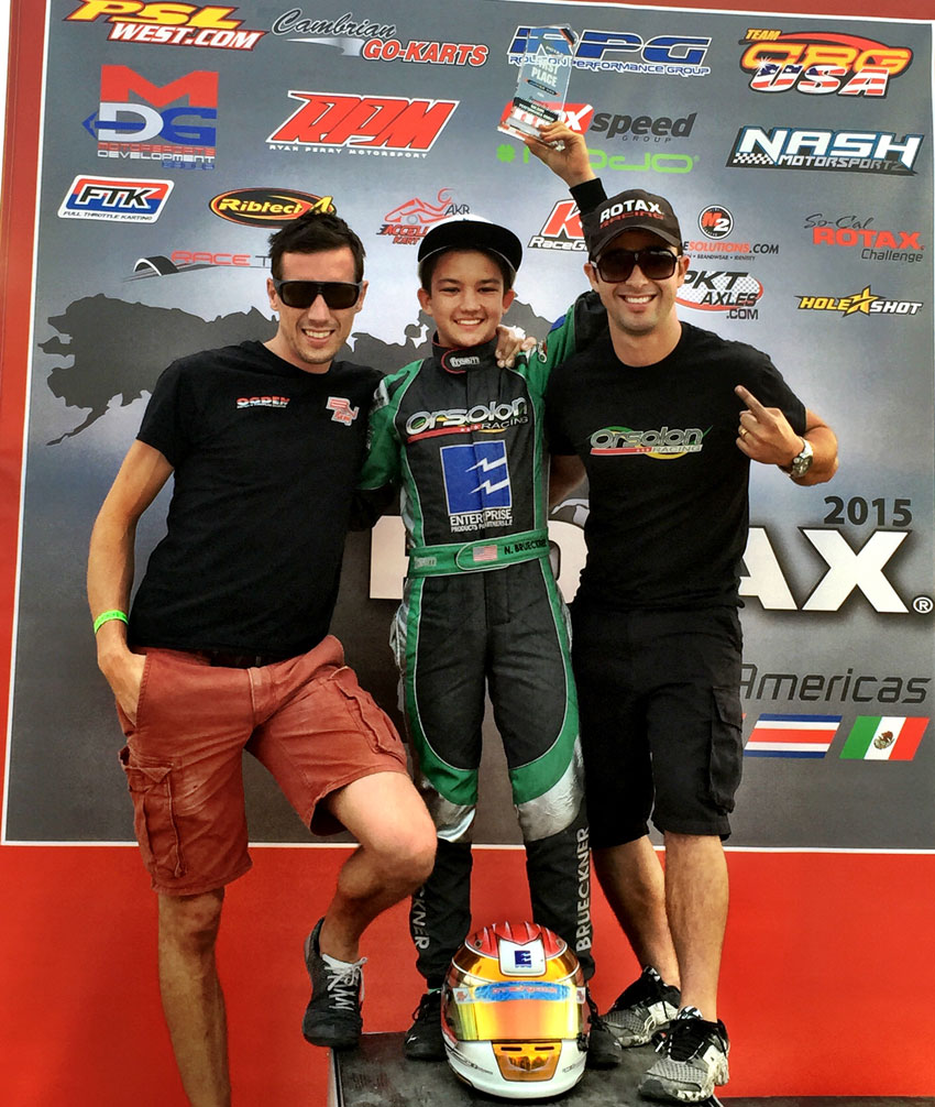 The Orsolon Racing team only had one driver, running in the Junior class, Nick Bruekner from Texas. After 3 days of intensive testing, he managed to put his gokart on pole for Saturday. After a solid race, he won the prefinal and with a nice battle in the main event, Nick had the best lap of the race.